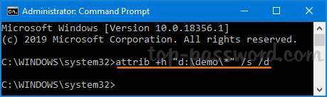 如果您需要隐藏目标位置(例如 D:\demo)中的所有文件和子文件夹,请运行以下命令: