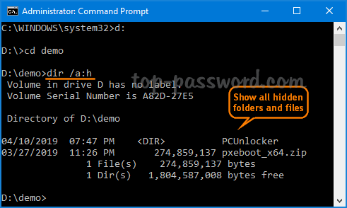 attrib -s -h "d:\demo\*" /s /d