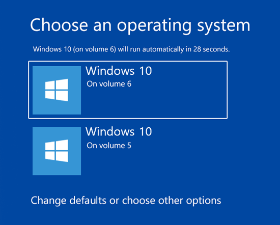 如果您在计算机上安装了两个或多个 Windows 操作系统,则启动电脑时将进入一个菜单,您可以在其中选择操作系统。