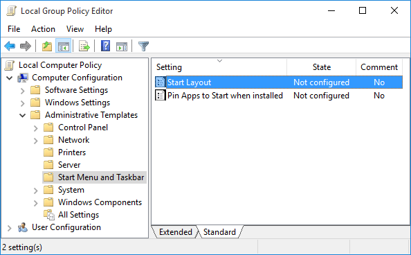 - 如果您想锁定所有用户的“开始”菜单布局,请导航至: