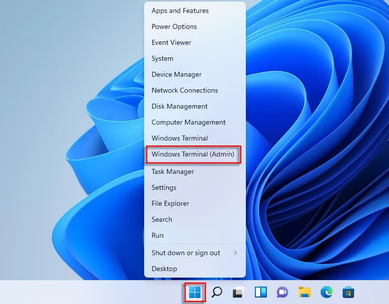 步骤1右键单击开始图标并选择Windows 终端(管理员)。