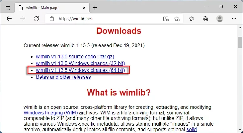 步骤1下载wimlib v1.13.5 Windows 二进制文件(64 位)