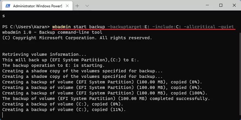 方法 1:使用 WBAdmin 在 Windows 11 中创建系统映像