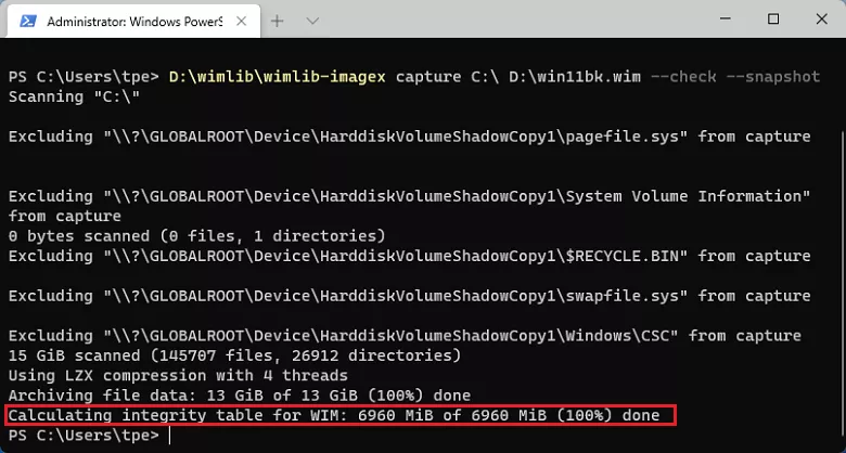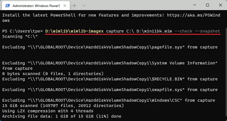 方法3:使用wimlib工具在Windows 11中创建系统映像