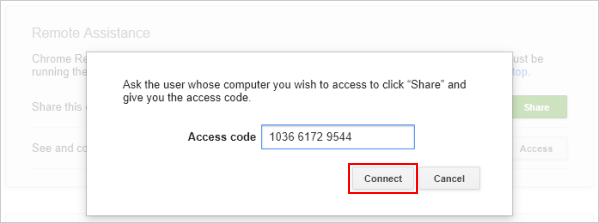 在 Windows 上,启动 Chrome 远程桌面。点击开始使用在“远程协助”下,然后单击使用权。输入访问代码,点击连接。连接成功后,您就可以访问 Mac。
