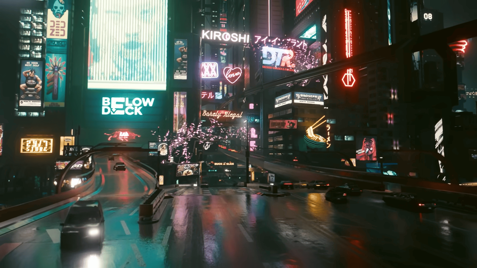 帧率已经稳定,在激烈的动作序列和车辆战斗中帧率下降的情况更少。照明系统进行了彻底检修,通过逼真的霓虹灯反射和动态阴影使夜之城感觉更加生动。