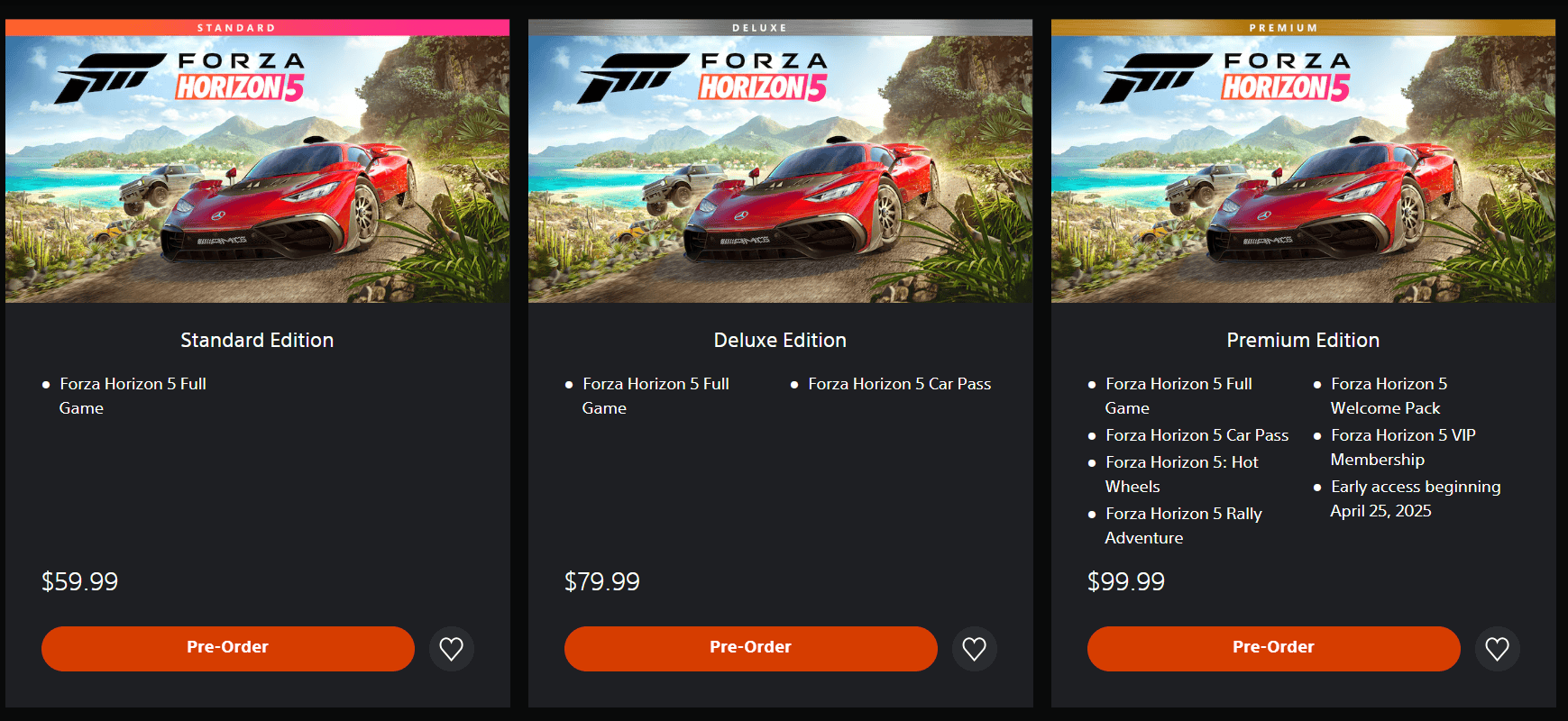 三个版本极限竞速地平线 5现在准备预购于PlayStation 商店: