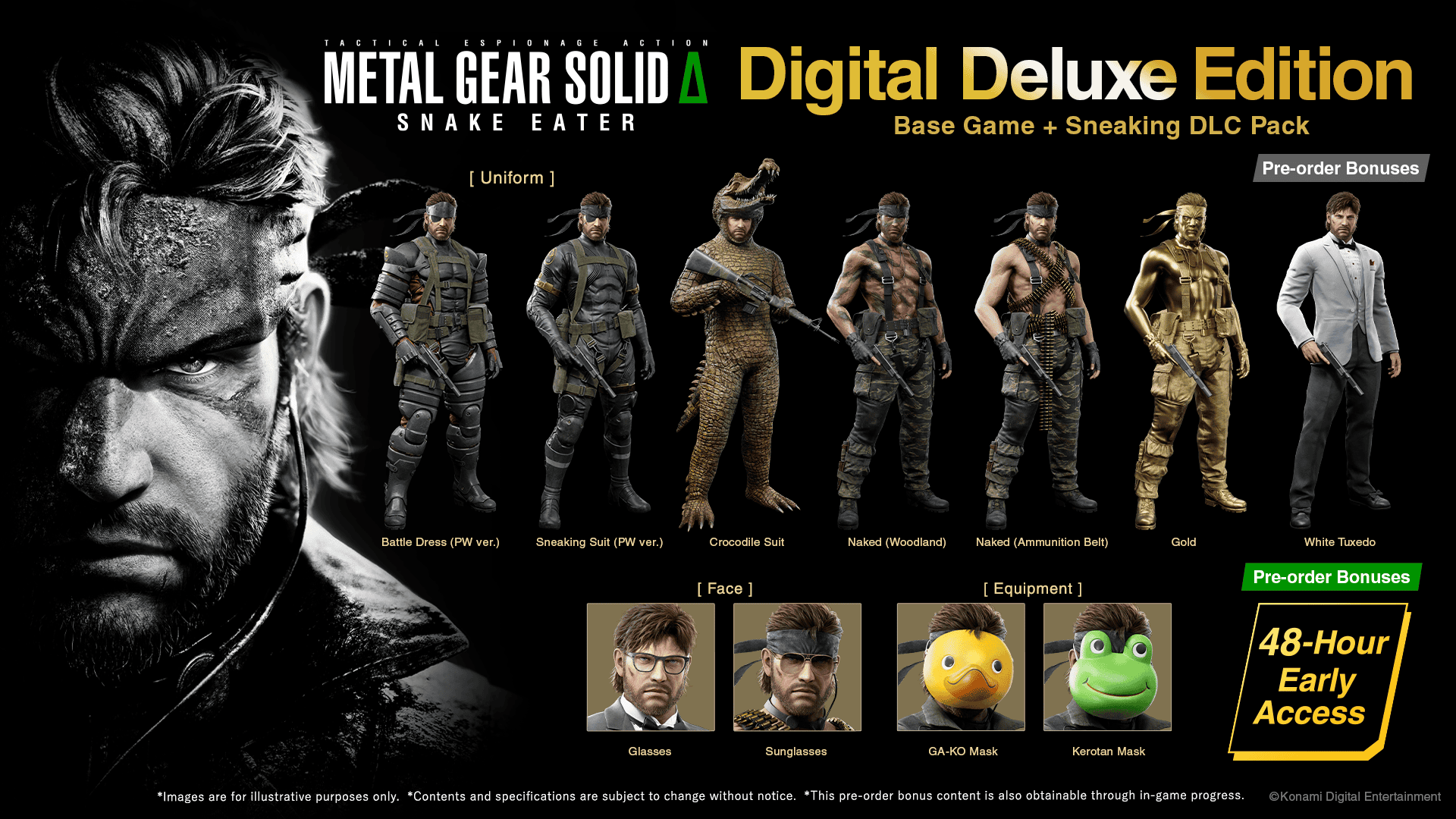 《合金装备 三角洲:食蛇者》现已可通过各种零售商和包括 Steam 在内的数字店面进行预订。尽早获得副本的玩家可能会获得特殊奖励或独家内容,但具体的预购奖励尚未完全详细说明。