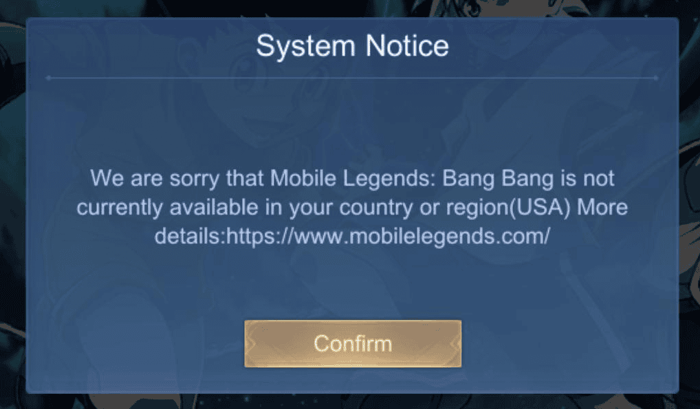 由于我们无法控制的情况,移动传奇:Bang Bang目前无法获得美国的球员。