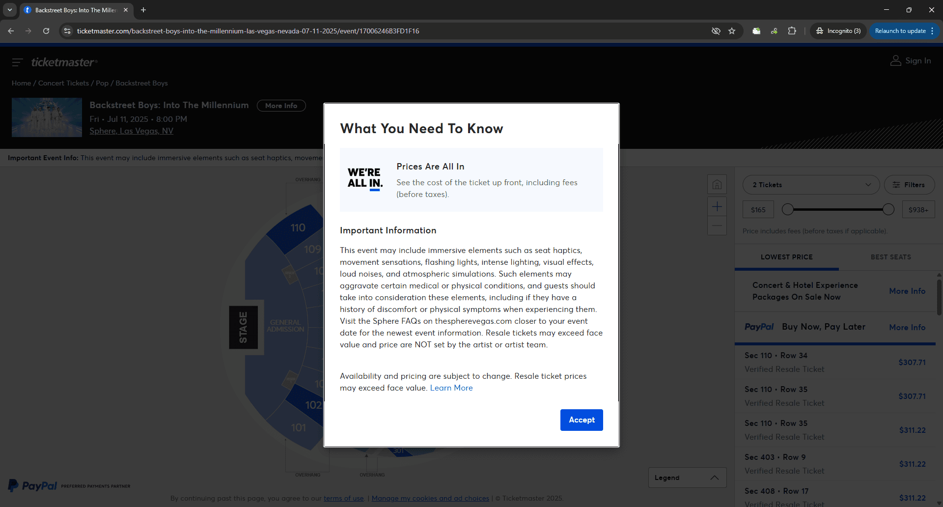 截至 2025 年 5 月 12 日,Ticketmaster 已改为全包定价整个北美,使他们的做法与世界其他地区保持一致。这一变化意味着购票者现在在浏览活动时可以立即看到门票的完整价格。