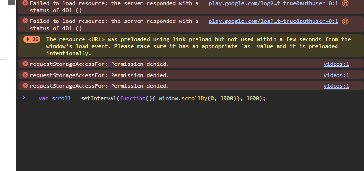 - 停止滚动:所有视频加载后,粘贴下一个代码并按 Enter 键: