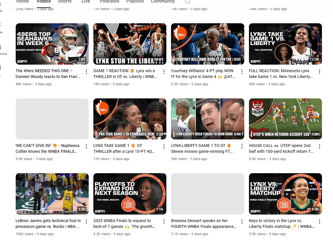 - 打开视频选项卡:单击“视频”选项卡可加载频道的视频列表。