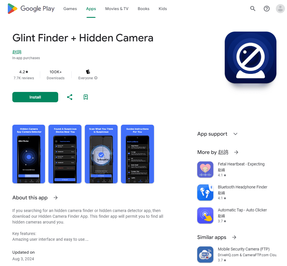 | 隐藏设备探测器 | 安卓 | 磁场、红外和射频检测。 |