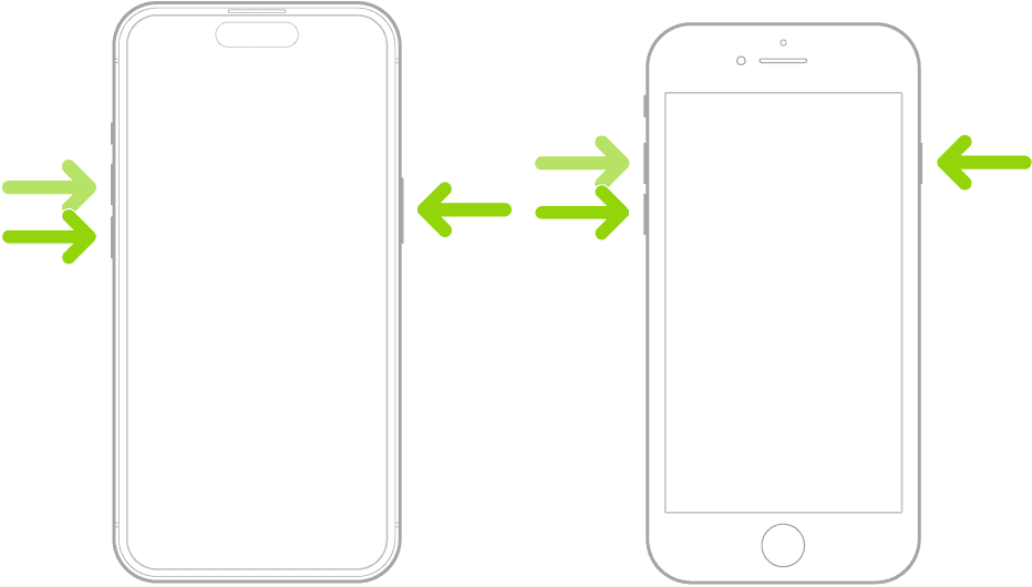 - 按住:同时按住主页按钮和侧面(或顶部)按钮。