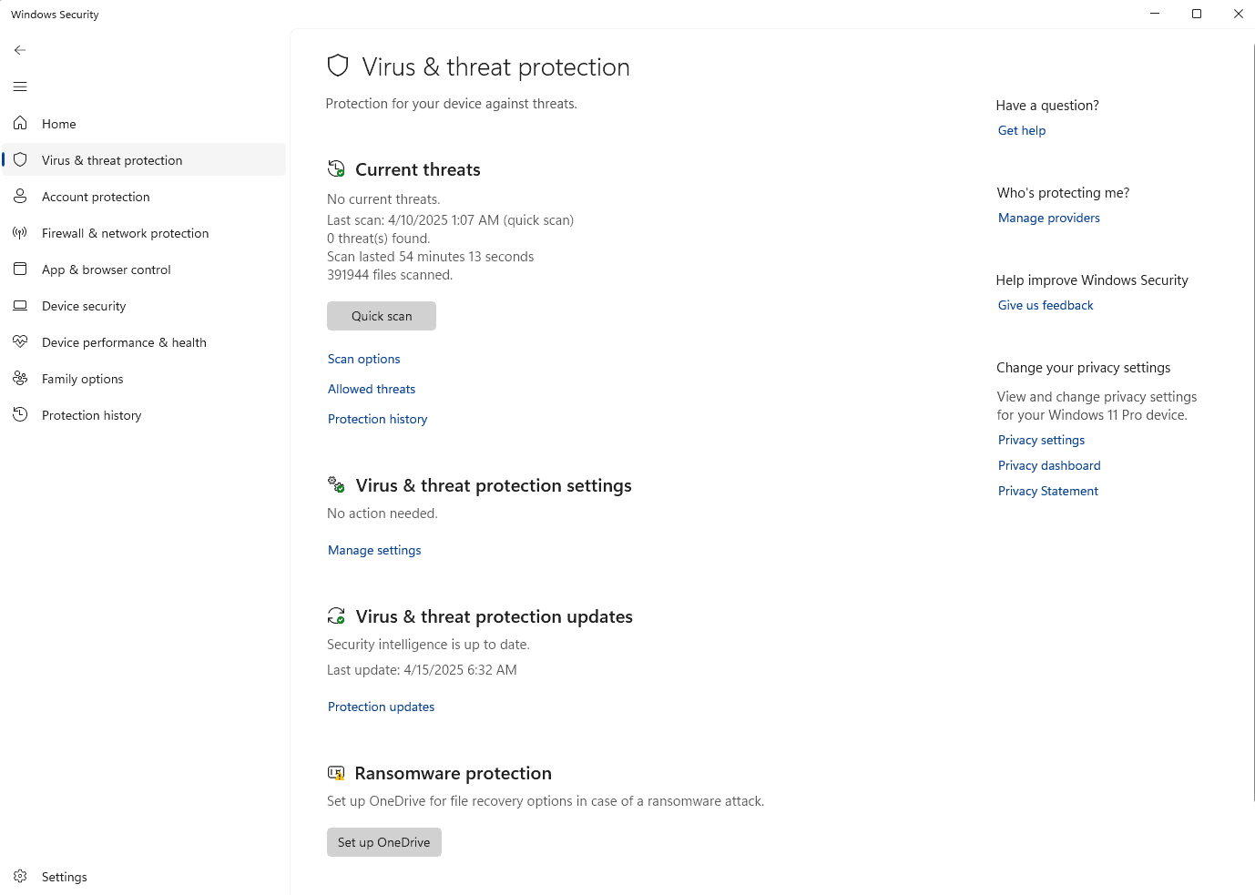 - 如果未找到任何内容,您将看到一条消息:“目前没有威胁”——这是个好消息。