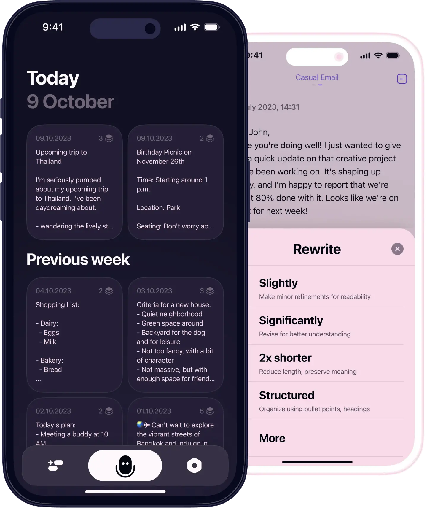 Letterly 会转录您的声音,然后将您漫无目的的想法重组为可读的笔记、列表或博客草稿。您可以在原始版本和清理版本之间切换,甚至可以将其格式化为社交媒体帖子或专业消息。
