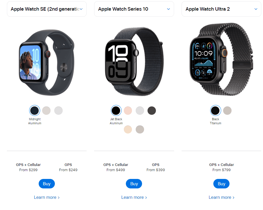 截至 2024 年 10 月,Apple Watch 已有 10 个主要系列。然而,苹果目前只销售三种: