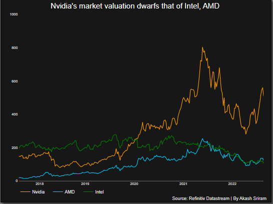 每个人都首先以 Nvidia 为基础,如果一家公司推出了一款新硬件,这仅仅意味着他们正在奋起直追。但只有少数几家公司,包括 AMD(Nvidia 在图形处理单元 (GPU) 市场上的主要竞争对手)和英特尔,接近分得 Nvidia 无可争议的份额。