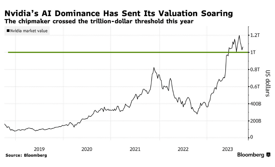 2023 年对于英伟达公司来说绝对是重要的一年,这家计算机芯片设计公司已与苹果、亚马逊、Alphabet 和微软等科技巨头一起跻身价值超过 1 万亿美元的美国公司精英俱乐部。由 OpenAI 的 ChatGPT 引领的人工智能热潮导致 Nvidia 供应了全球大部分人工智能芯片,而实现前所未有的增长一季度又一季度。