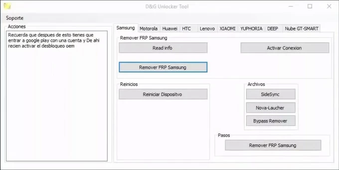 - 適用於舊款三星設備的出色 FRP 旁路助手 - S9、S9+、S8、S8+、Note 8、S7、S7+、S7 Edge、Note 7、S6、S6+、S6 Edge、Note 6、A3、A5、J3、J5 等。