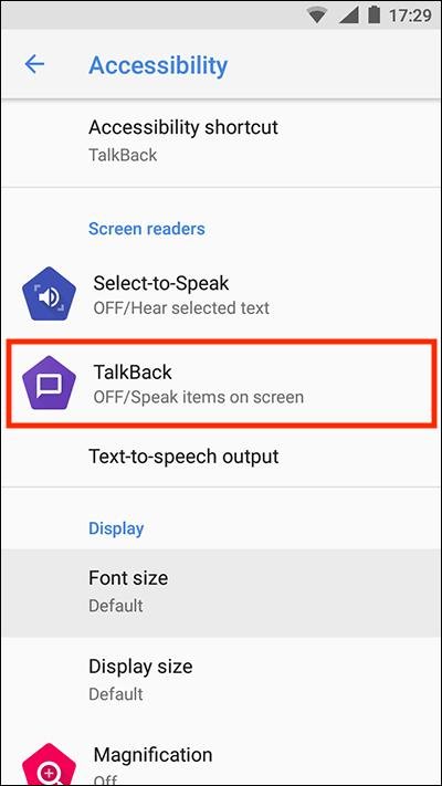 2.同時按音量增大和音量減小按鈕可啟用 TalkBack,以幫助您控製手機。
