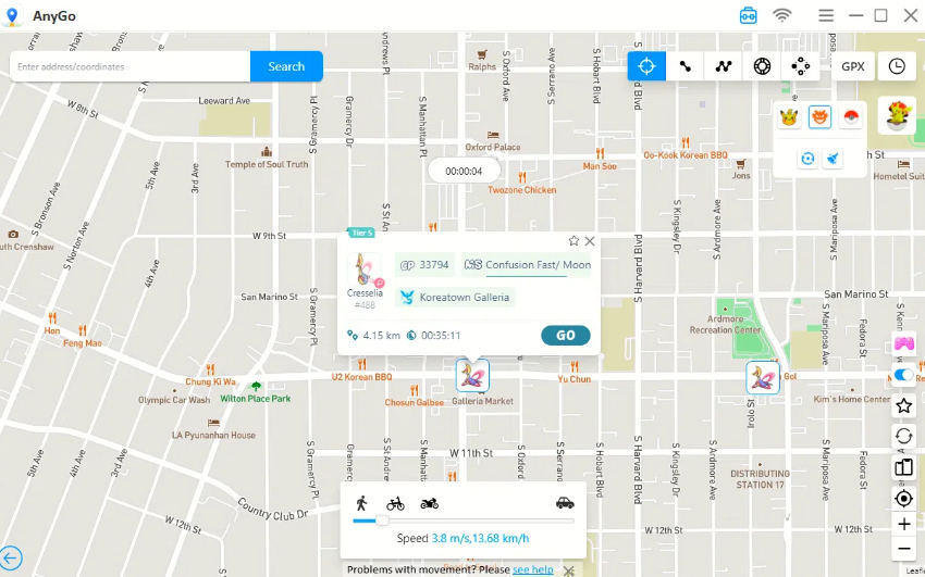 具有一鍵傳送、自動掃描附近的神奇寶貝和戰鬥隊伍以及可定制的移動路徑等功能,AnyGo 假 GPS使安全地欺騙您的位置變得異常容易。無論您身在何處,它都是充分利用 GO Fest 的完美工具!