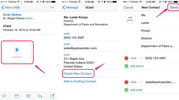 - 轉到您的iPhone,打開電子郵件,然後點擊VCARD .VCF。