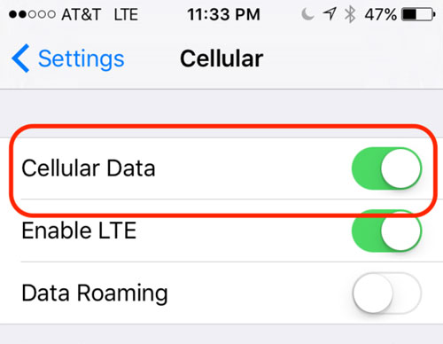 - 在 iPhone 上的“設置”中打開“蜂窩數據”。