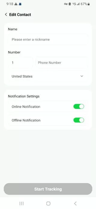 現在,您需要輸入暗戀對象的姓名和您需要跟踪的號碼。您還需要選擇國家/地區並啟用在線/離線狀態通知。添加所有詳細信息後,點擊“開始跟踪”選項。