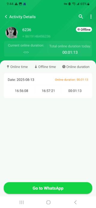 步驟3您現在可以單擊“激活”按鈕並查看離線/在線狀態。您還可以點擊“詳細信息”選項來查看更多信息。在詳細信息頁面上,您可以點擊“轉到 WhatsApp”以打開 WhatsApp 應用程序並與暗戀對象聊天。