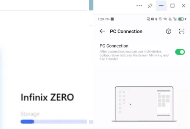 - 在您的 Infinix 手機上,下載並打開 Link to Windows 應用程序(通常預裝在最新的 Infinix 型號上)。