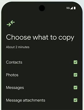 - 在舊手機上,選擇要傳輸到新手機的數據,然後按開始手機克隆;