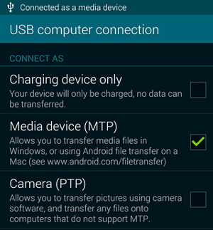 - 從Oppo屏幕頂部拖動通知面板選擇“媒體設備(MTP)”的模式,然後在“允許USB調試”彈出時單擊“確定”。