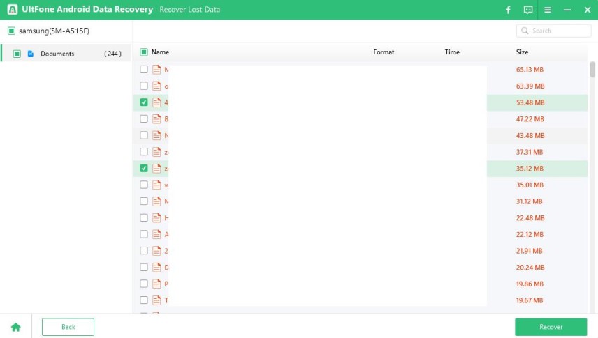 步驟5這就是使用UltFone Android數據恢復的容易,在掃描後,它將向您顯示所有可以恢復的文件,並檢查所需的文件並留下其餘的文件。然後,單擊“恢復”。