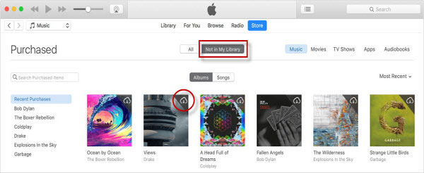 - 點擊購買>音樂以查看您的所有購買。