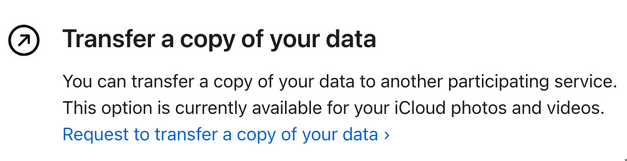 - 轉到Apple的數據和隱私頁面,登錄,然後選擇“傳輸數據副本的請求”。