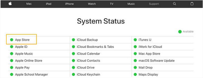 面對“更新Apple ID設置不斷彈出”問題時,您有時必須確定Apple是否是問題的根源。使用設備和帳戶正確的能力與Apple服務器的功能密切相關。您可以轉到Apple系統狀態頁面,查看Apple ID旁邊的選項是否為綠色。如果是綠色的,則可以排除Apple服務器的問題。如果不是綠色,則表明Apple ID服務已禁用,您必須等待Apple解決該問題。