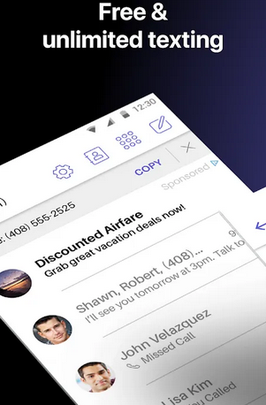 - 與需要設備 SIM 的 MightyText 不同,為用戶提供免費短信的專用電話號碼。