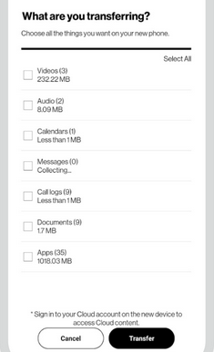 - Verizon提供的免費應用程序在手機之間移動數據。