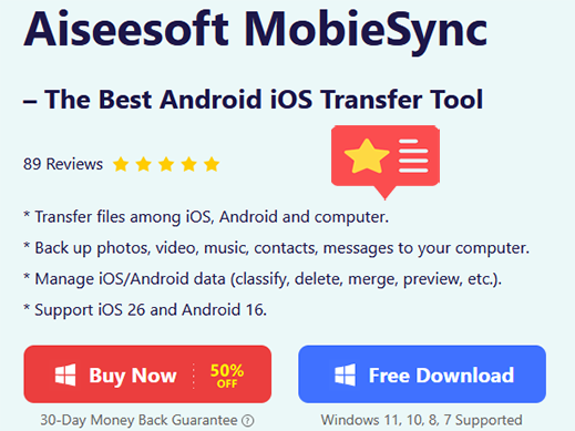 當尋找可靠的解決方案來管理或在移動設備和計算機之間傳輸數據時,許多用戶轉向 Aiseesoft MobieSync。然而,在使用任何工具之前,在將其用於數據傳輸或管理之前評估其可靠性非常重要,尤其是在處理個人或敏感文件時。