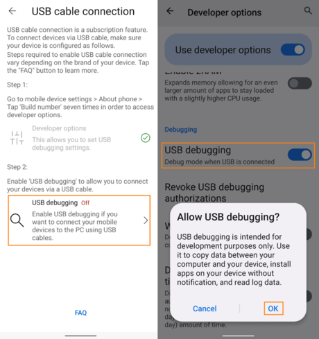 - 步驟1打開 Android 上的“開發者選項”(點擊“版本號”幾次)並激活 USB 調試。
