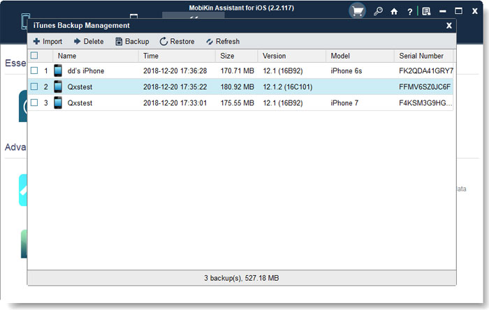 步驟2:選擇“iTunes備份和恢復”,彈出窗口將顯示所有已連接的可備份的iOS設備。