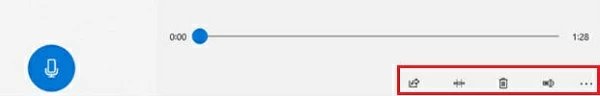 完成後,最近的錄音將在窗口的左側有序顯示。另外,您將獲得底部的選項以共享,刪除或重命名音頻文件。如果需要,請使用修剪功能來修剪錄製並將其保存在計算機上。