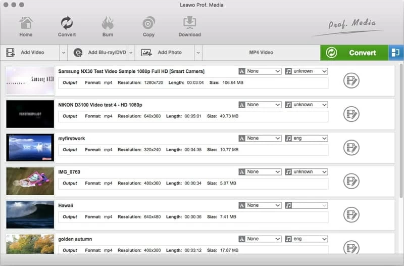 Leawo Video Converter 有一個免費版本,可用於 Mac 上的 MP4 轉換,但其功能有限,並且與付費版本相比,只能以較慢的速度轉換每個視頻的前 5 分鐘。