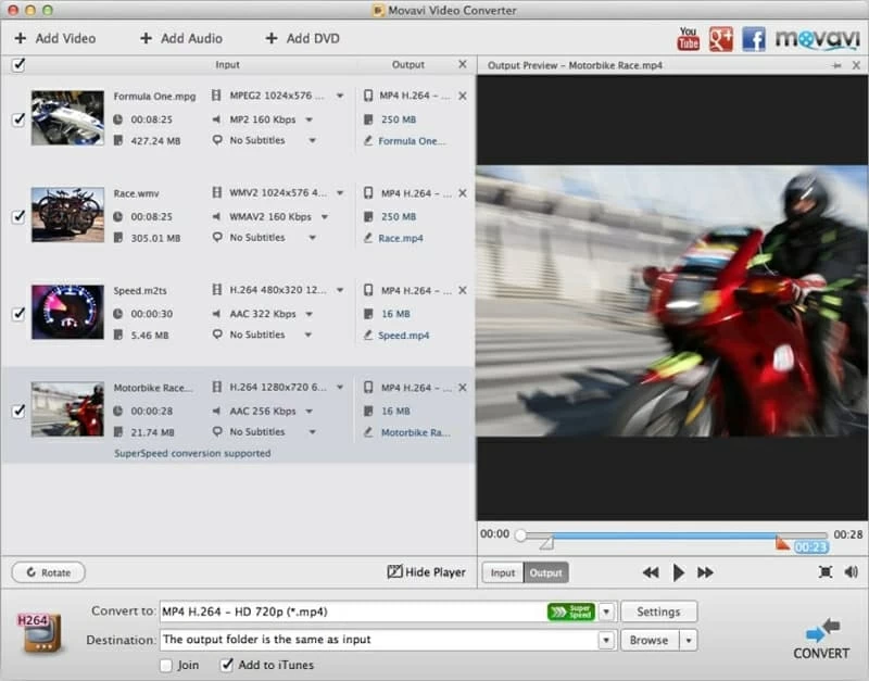 Smart Converter for Mac 是一款優秀的免費視頻轉換器。它運行平穩快速,可將音頻和視頻文件轉換為設備和應用程序(沒有特定輸出格式的選項)。每次您將視頻(例如 MKV 文件)轉換為 .mp4 時,它還會將轉換後的視頻導入 Mac 或 Windows 上的 iTunes。這對於許多用戶來說相當方便。