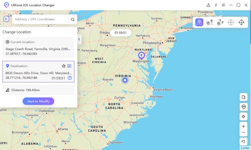 將出現一張地圖。單擊地圖上的任意位置或輸入位置名稱(例如日本大阪)。然後點擊“開始修改”。您的 iPhone 的 GPS 將更改為該地點。