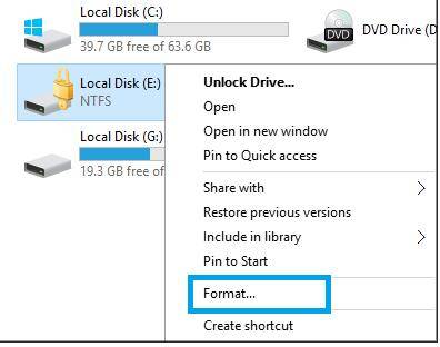 格式化硬盤是從電腦禁用 BitLocker 的另一種簡單方法。要格式化硬盤,請按照下列步驟操作:
