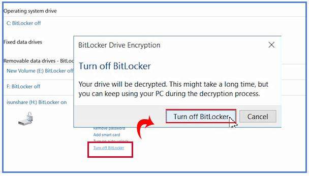 第 2 步:點擊關閉 BitLocker在你願意的驅動器上解密。