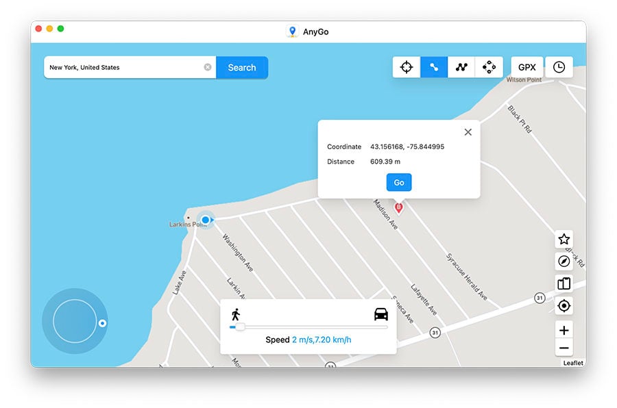 現在,單擊右上角的“兩點路線”或“多點模式”選項來設置您的速度、距離和位置。