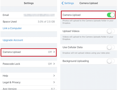 - 選擇並打開相機上傳。然後,所有照片都會自動上傳到 Dropbox 中的“相機上傳”文件夾。 (如何將 iPhone 備份到 Dropbox?)